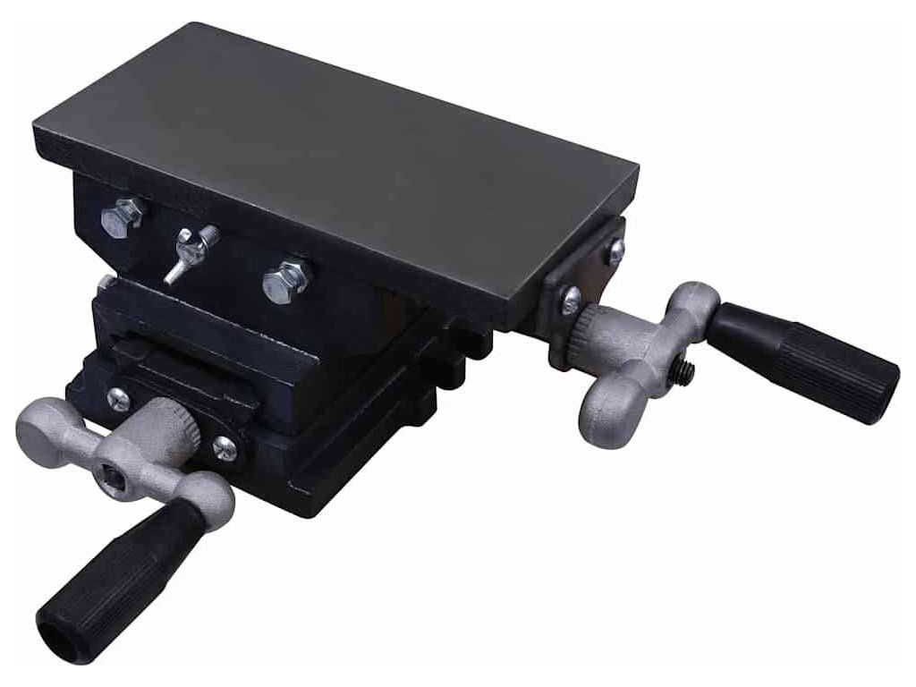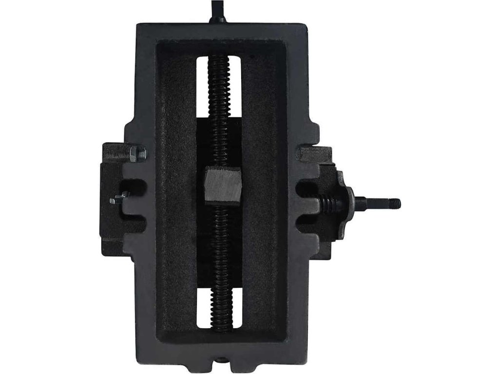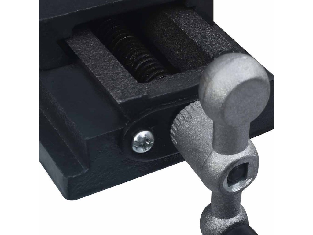Svěrák je vyrobený z litiny a je velmi pevný a robustní. Směr pohybu základny lze nastavit pomocí dvou klik, což usnadňuje přesné vrtání nebo frézování.