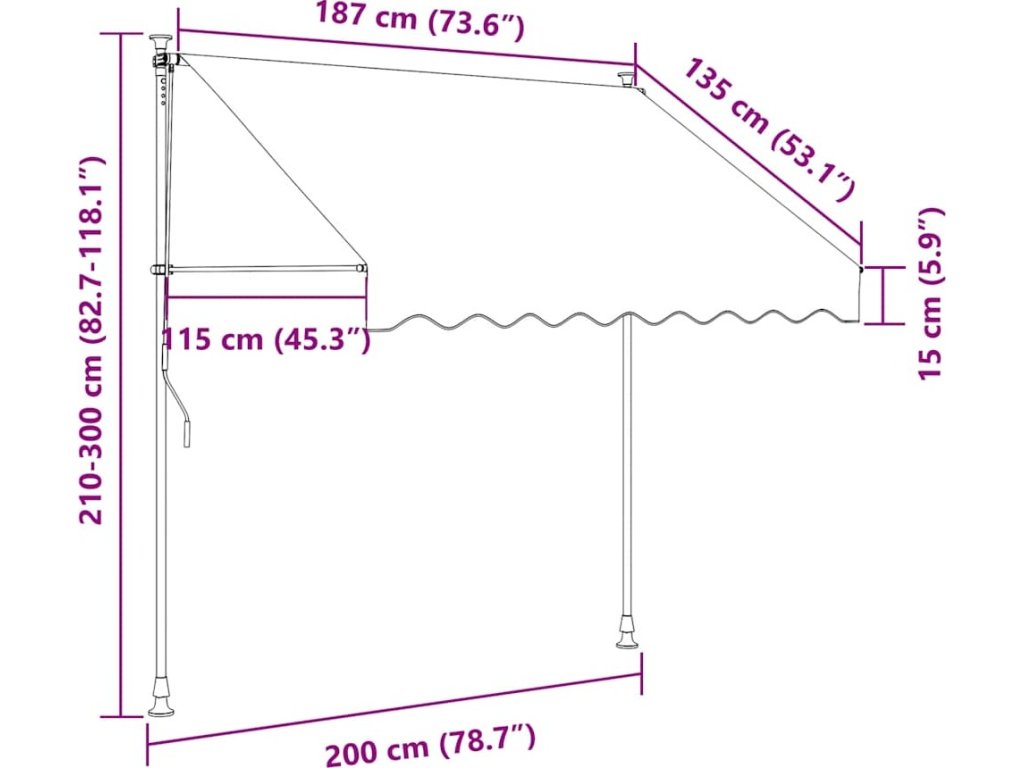 Ručně zatahovací markýza 200 cm pruhy [145836]