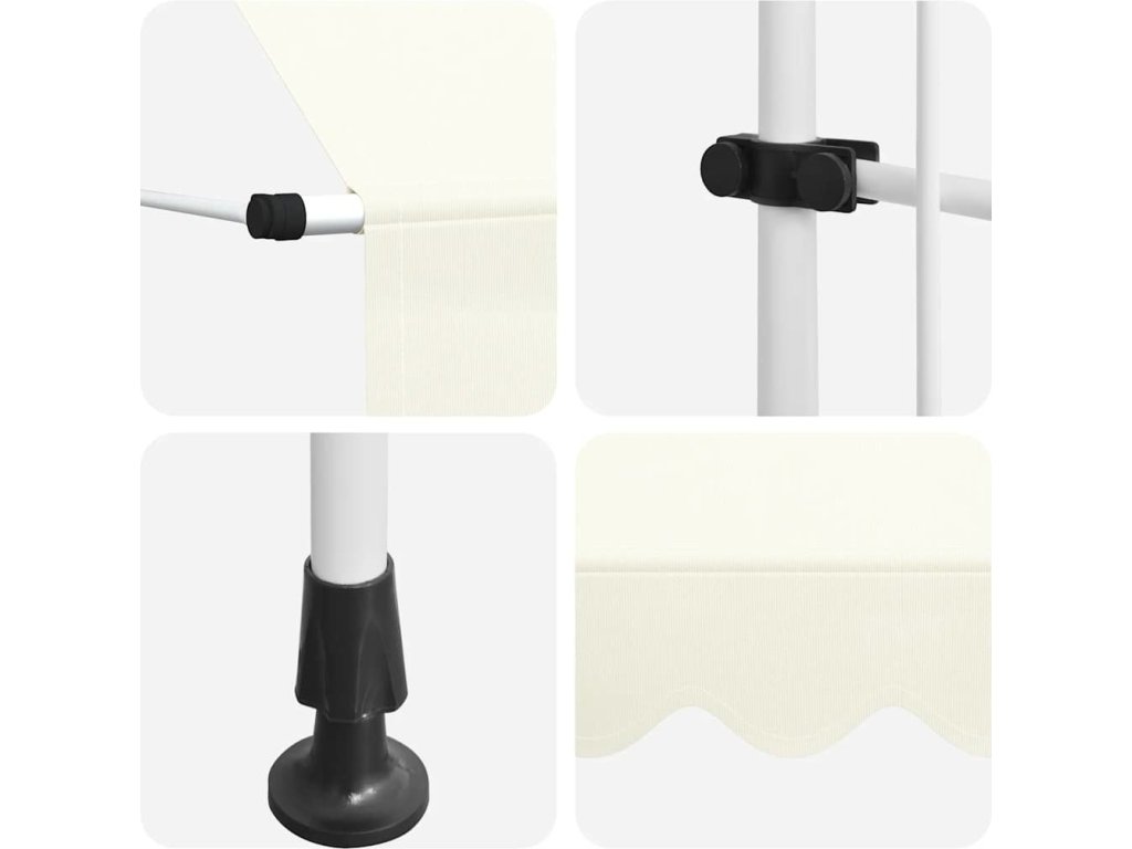 Naše markýza je vyrobená z polyesteru s vrstvou z PU, který odpuzuje vodu i špínu a je odolný vůči klimatickým podmínkám. Má pevný rám z oceli, který je zárukou stability a dlouhé životnosti markýzy. Polyesterovou stínící plachtu lze snadno sejmout a vyprat. Markýza je vybavená ruční klikou, takže je možné ji zatáhnout. Výšku a sklon markýzy lze taktéž upravit. Její montáž je velmi snadná.