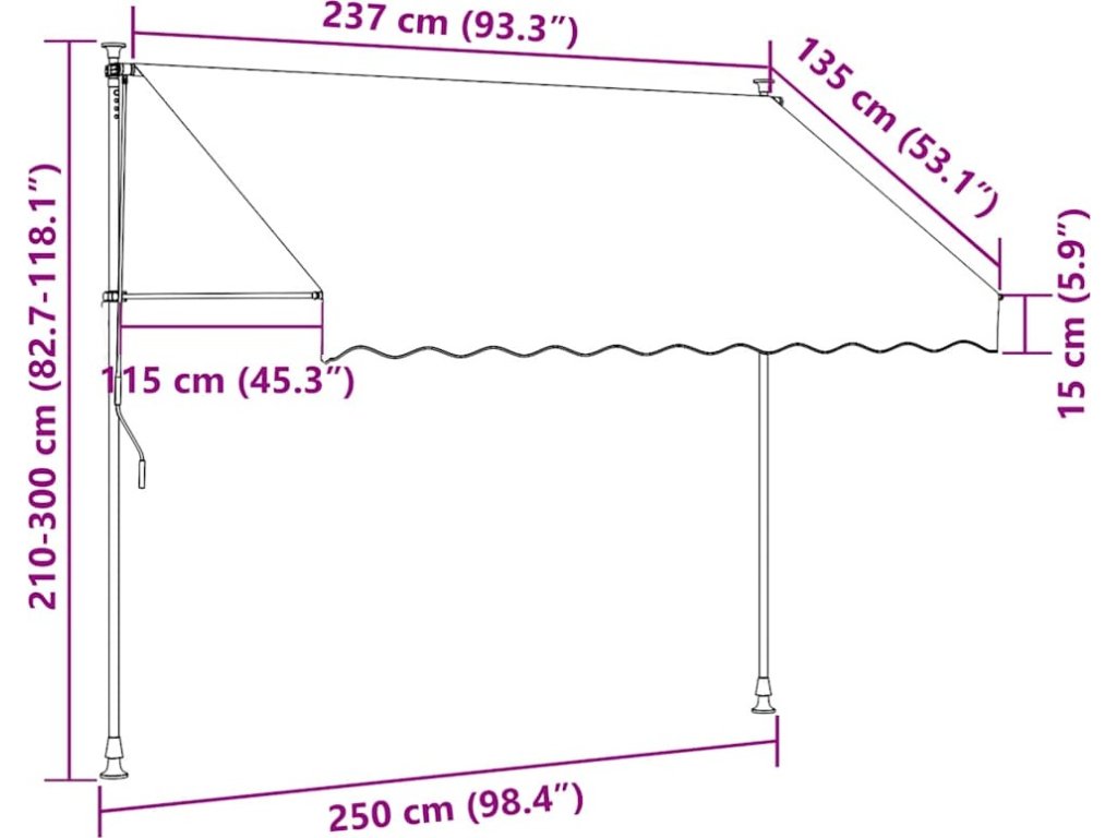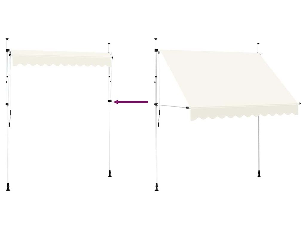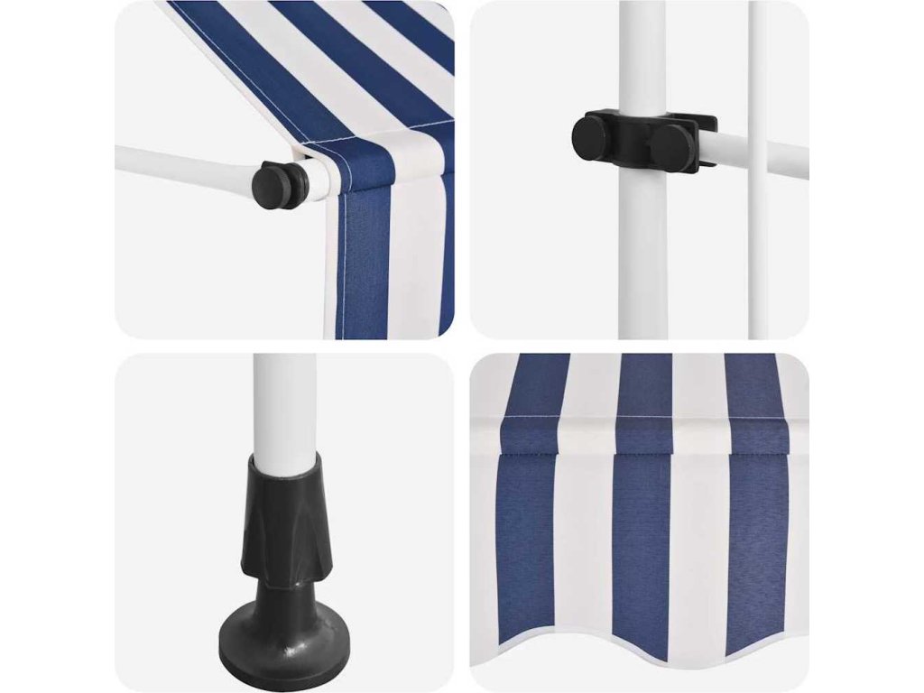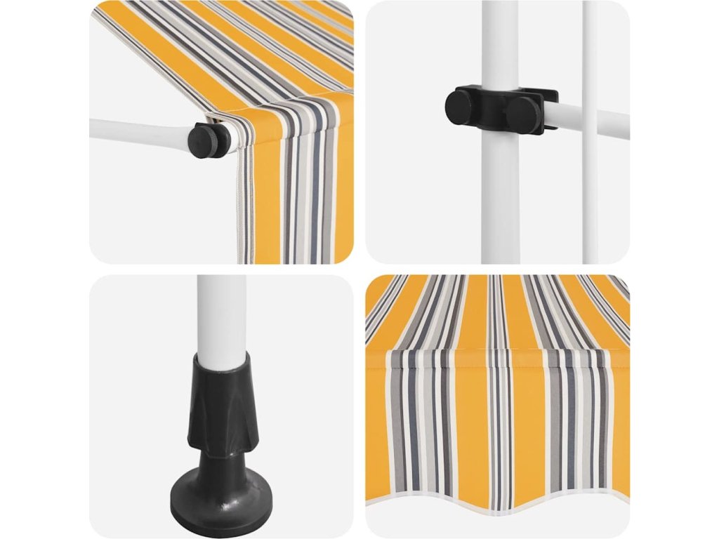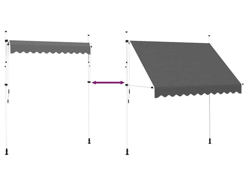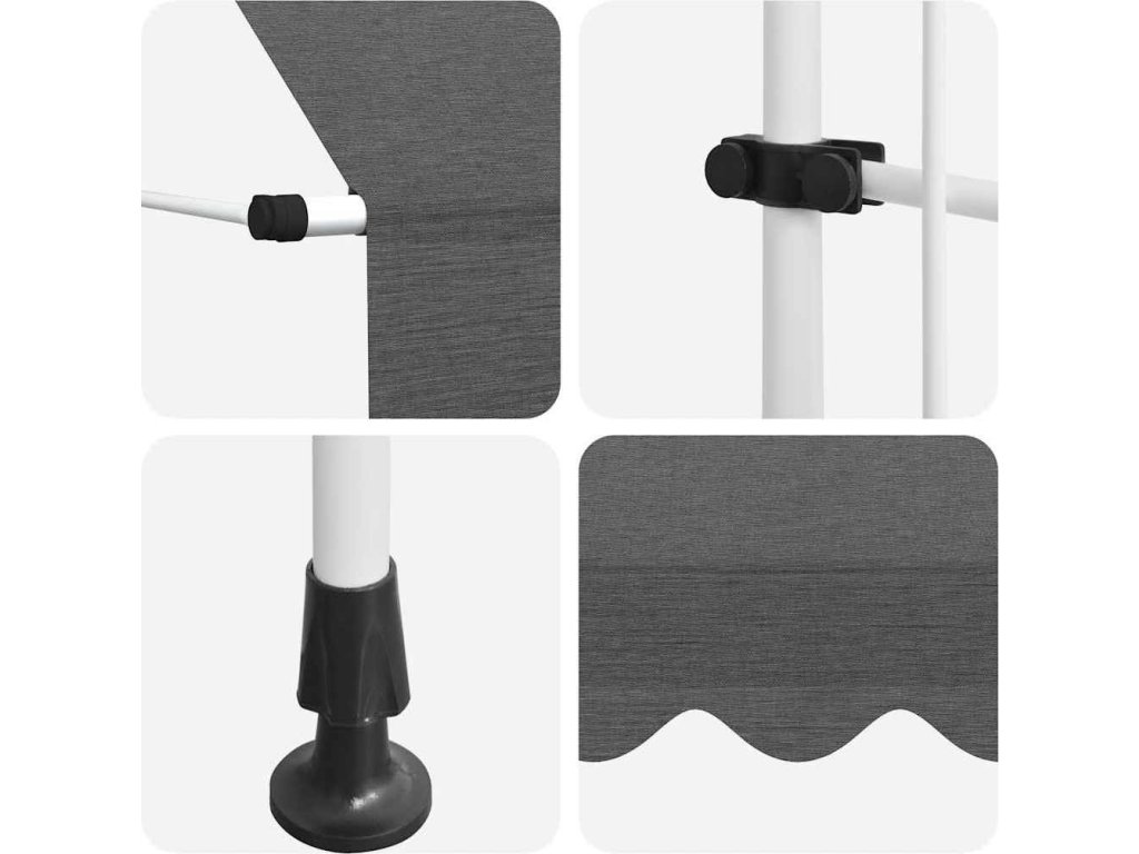 Naše markýza je vyrobená z polyesteru s vrstvou z PU, který odpuzuje vodu i špínu a je odolný vůči klimatickým podmínkám. Má pevný rám z oceli, který je zárukou stability a dlouhé životnosti markýzy. Polyesterovou stínící plachtu lze snadno sejmout a vyprat. Markýza je vybavená ruční klikou, takže je možné ji zatáhnout. Výšku a sklon markýzy lze taktéž upravit. Její montáž je velmi snadná.