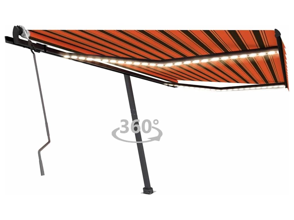 Tato markýza má hliníkový rám s práškovým nástřikem, který nerezaví, je lehký, ale přitom je mimořádně robustní. Zatahovací stříška je zhotovená z vysokohustotního polyesteru potaženého vrstvou PU, výborně tedy vzdoruje vodě i UV záření. Úhel a výšku si můžete navíc nastavit dle svých konkrétních potřeb. Volně stojící markýzu snadno roztáhnete a zatáhnete pomocí dlouhé ruční kliky. A co víc, solární LED světla poskytují energeticky úsporné osvětlení v noci. Robustní základnu lze otáčet o 360 stupňů, čímž se maximálně přizpůsobí vašim potřebám.