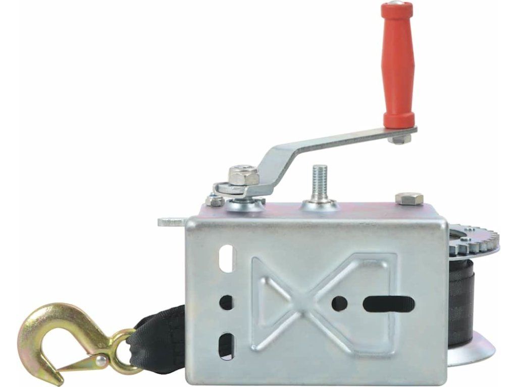 Ruční naviják s tkaným popruhem je ideální pro zdvihání nákladních aut a přívěsů, ale i pro jiné tažné úkony. V našem obchodě naleznete také kompatibilní stojan na naviják přívěsu pro lodě (SKU 90634), jehož zakoupením získáte kompletní set.