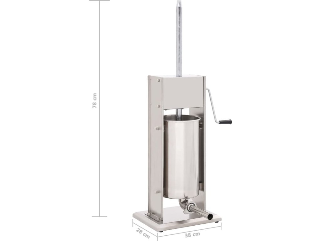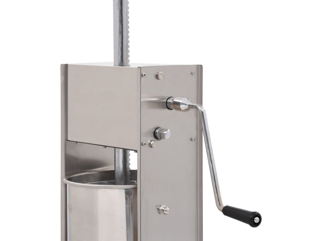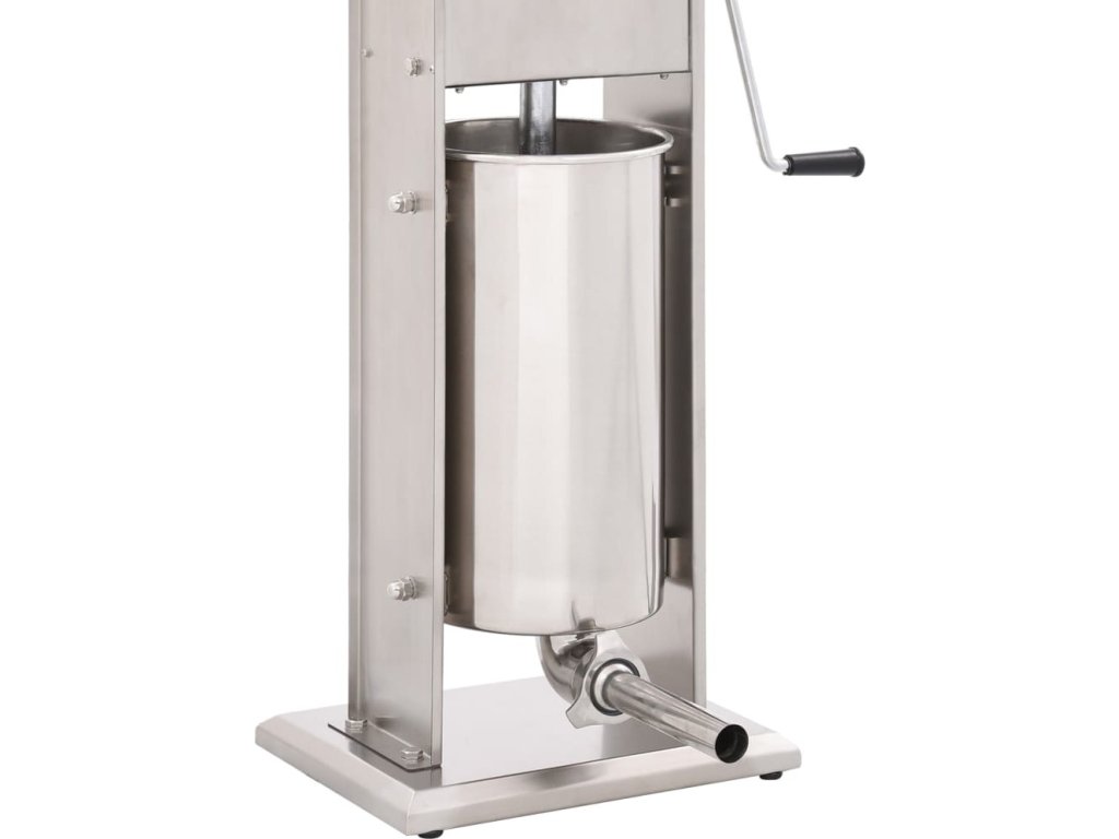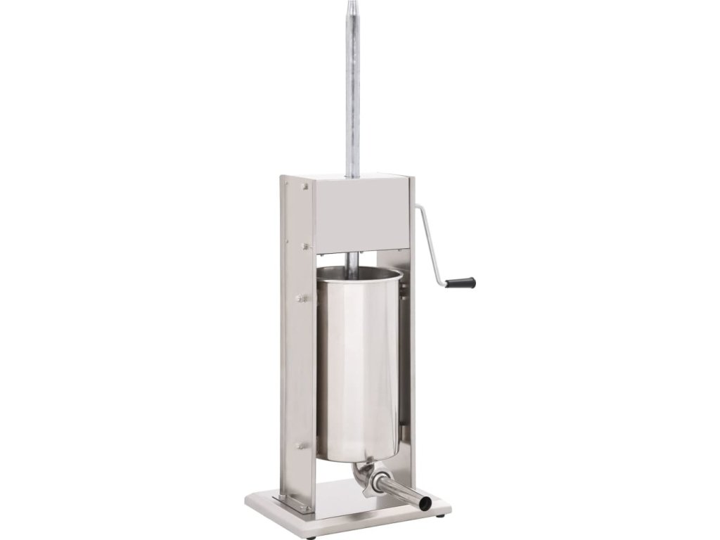 Tato nerezová plnička klobás je vybavená 15litrovým zásobníkem, který lze vyklopit či vyjmout pro pohodlnější plnění masem nebo čištění. Ruční klika pohybuje pístem, který protlačí maso skrz plnicí nástavec. Součástí balení jsou také 3 plnicí nástavce v různých velikostech pro uspokojení vašich nejrůznějších potřeb.