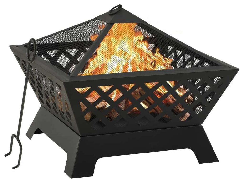 Přenosné ohniště je vyrobené z oceli a skvěle absorbuje a vyzařuje teplo. Má širokou a hlubokou mísu, ve které snadno založíte velký táborák pro celou rodinu. Pletivový kryt vám umožní sledovat hořící oheň a zároveň brání odletování jisker a úlomků, a zajišťuje tak více bezpečí. V pletivovém krytu je též praktický kroužek, za který ho můžete snadno přenášet. Přiložený kovový pohrabáč lze použít jak k sejmutí pletivového krytu, tak k přeskupení palivového dříví.