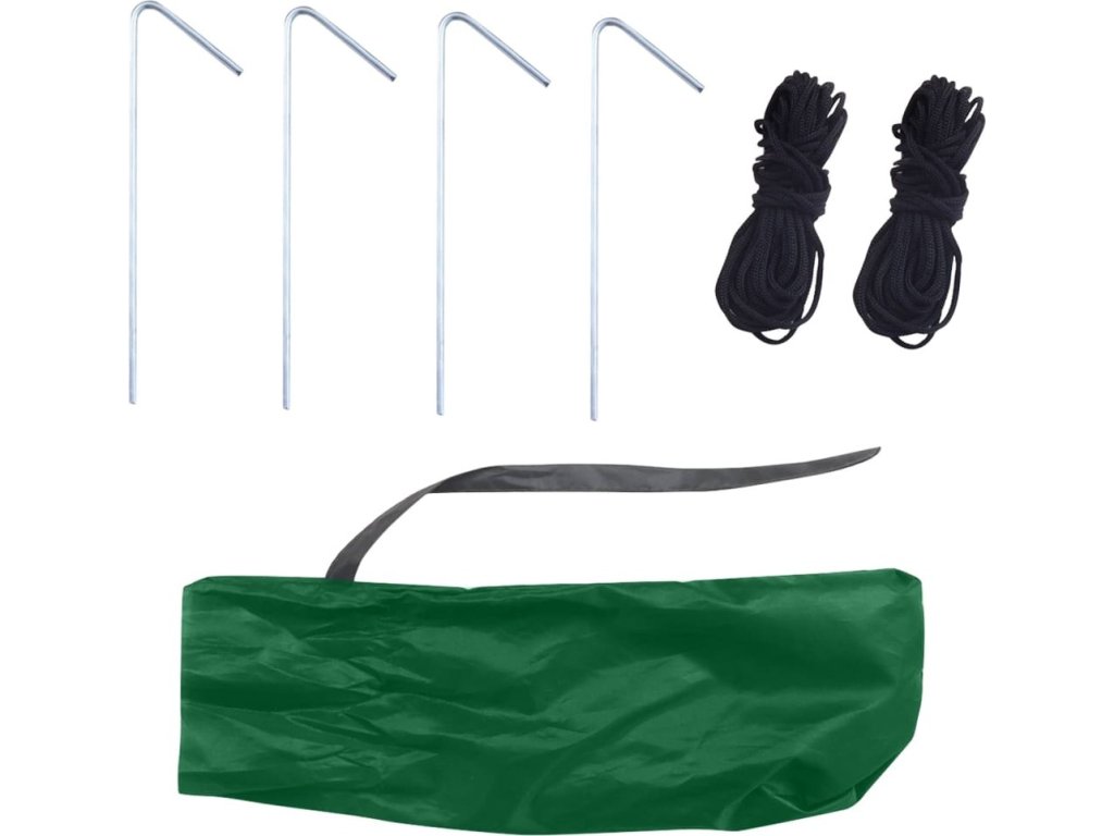| Příslušenství zahrnuje: | 4 x kovové upevňovací kolíky, 2 x 3m lanko, 1 x plátěná úložná taška |