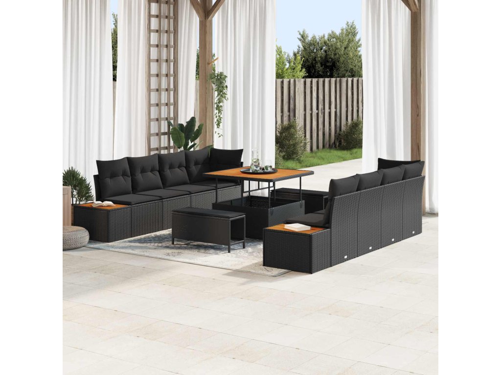 Sada zahradních pohovek s polštářem 11 pcs Černá Poly ratan [3364844]
