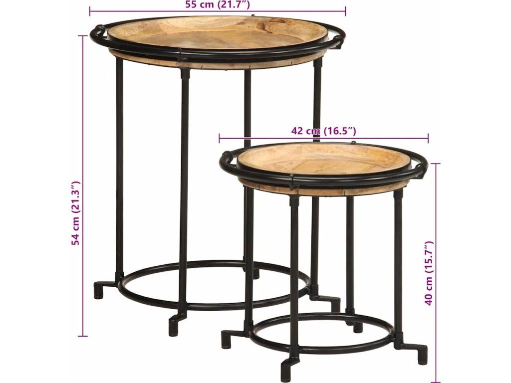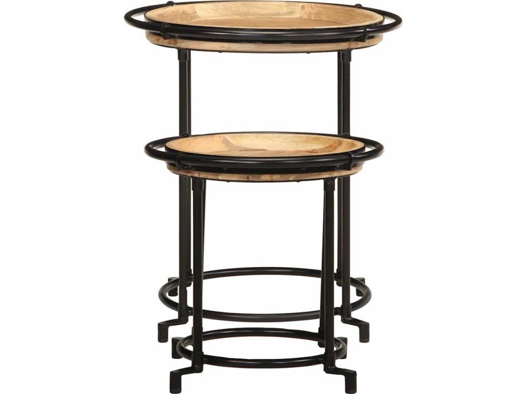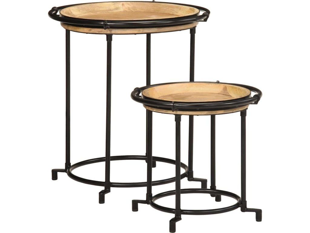 Sada 2 kusů postranních stolků z masivního dřeva Mango [4013513]