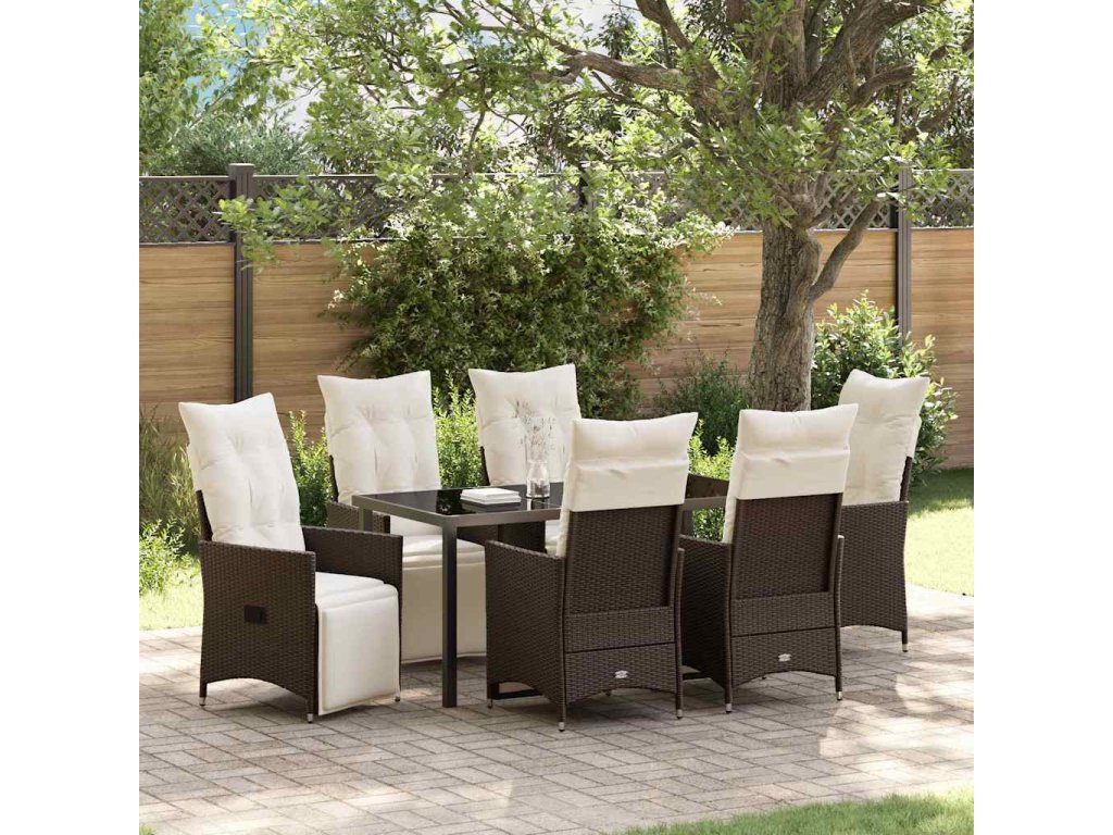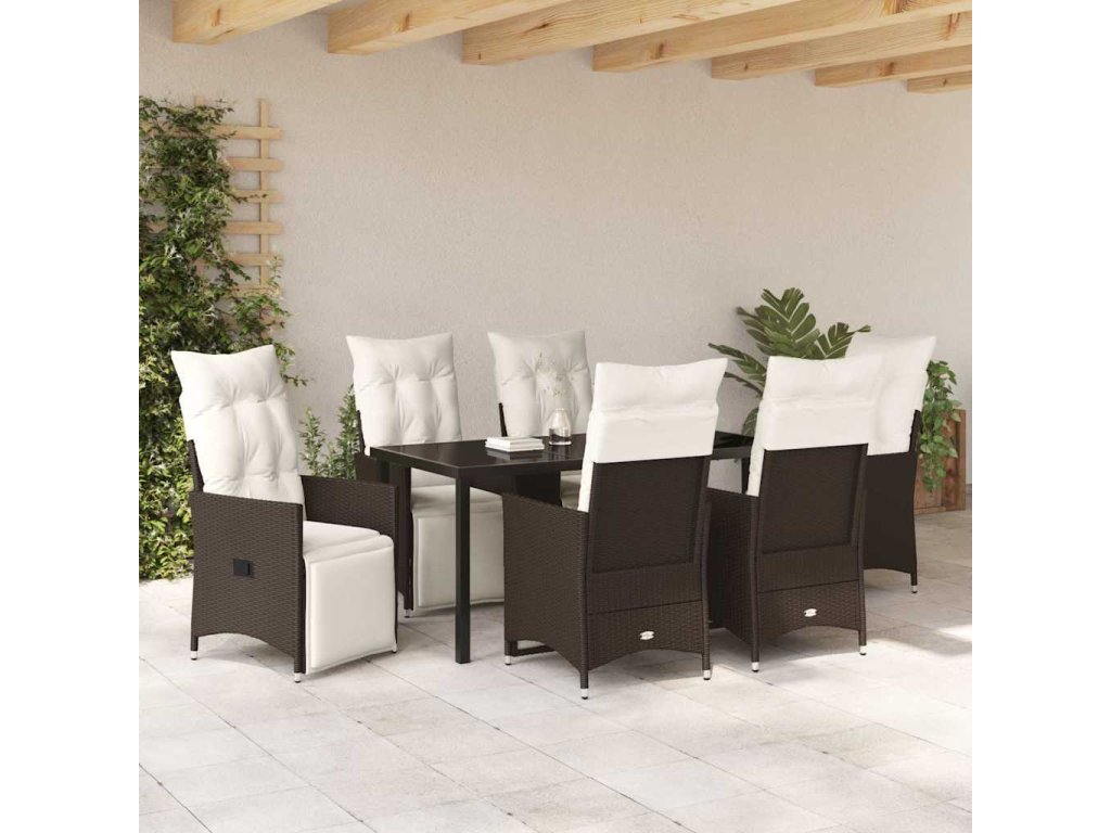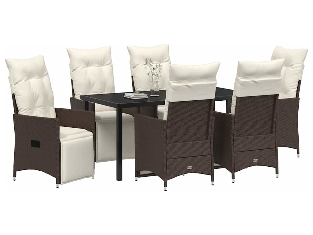 Zahradní jídelní souprava s polštářem 7 pcs Hnědá Poly ratan [3379573]
