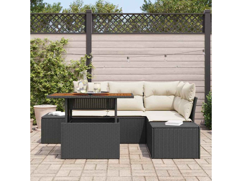 Sada zahradních pohovek s polštářem 5 pcs Černá a krémová [3349956]