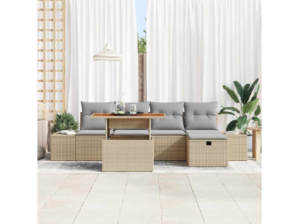 Sada zahradních pohovek 6 pcs Béžová polyratan [3361378]