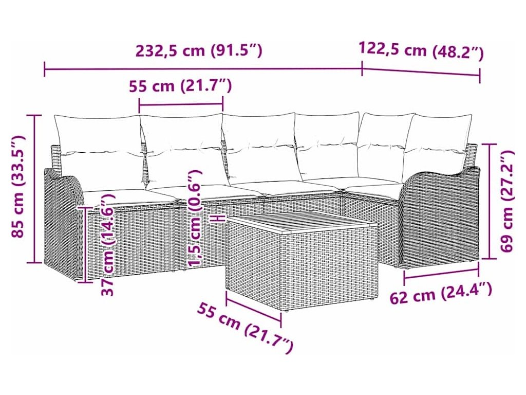 - Součásti: Tato úžasná sada obsahuje dvě středové sedadla, všestranné rohové sedlo, dvě pohovky a praktický zahradní stůl. Každá část spolu skvěle ladí a přináší pohodlí a styl. Polstrování sedadel je jednoduché na údržbu díky zipu.