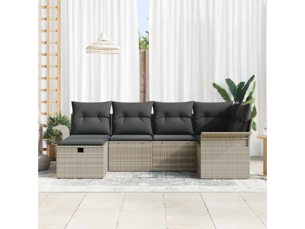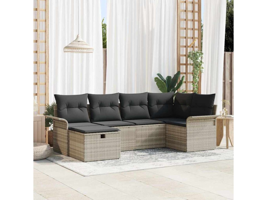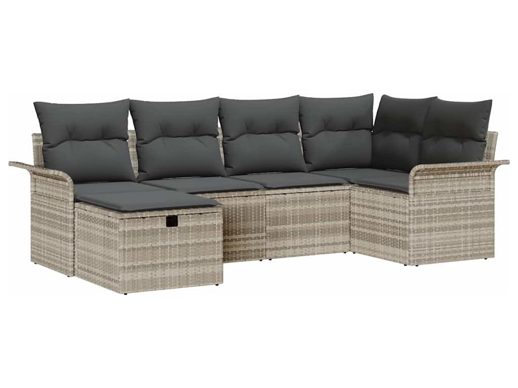 Sada zahradních pohovek s polštářem 6 pcs Světle šedá polyratan [3358881]
