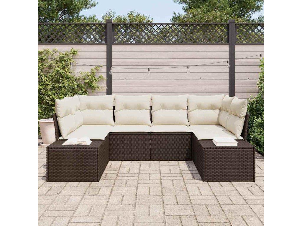 Sada zahradních pohovek 6 pcs Hnědá a krémová Poly ratan [3355867]