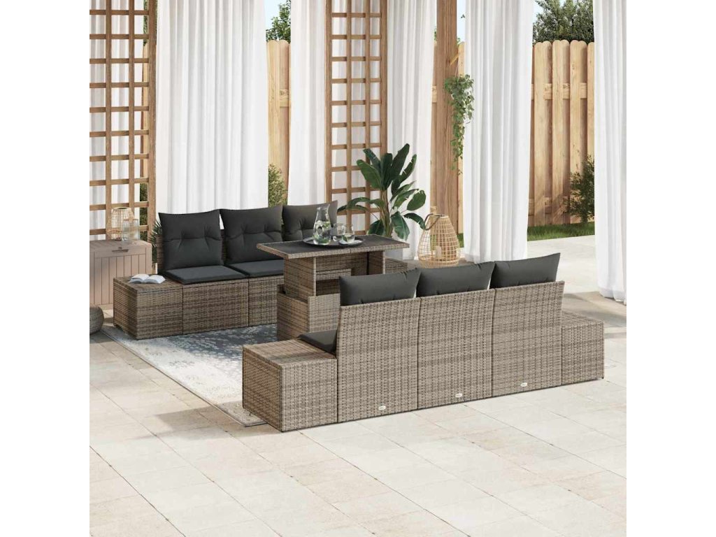 Set pohovek s polštářem 7 pcs Šedá polyratan [3349105]