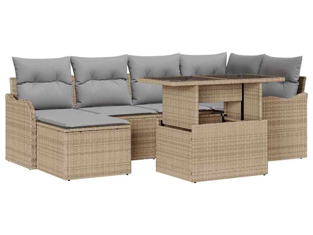 Sada zahradních pohovek s polštářem 7 pcs Béžová Poly ratan [3357233]
