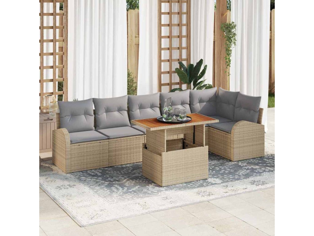Sada zahradních pohovek s úložištěm 7 pcs Béžová Poly ratan [3358331]