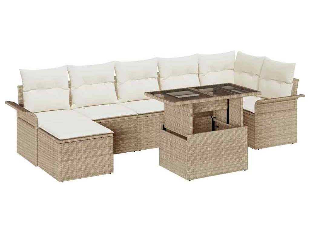 Sada zahradních pohovek s polštářem 8 pcs Béžová Poly ratan [3357064]