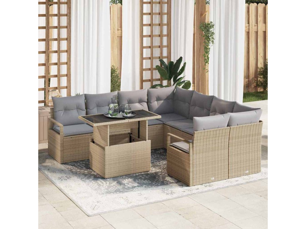 Sada zahradních pohovek s polštářem 9 pcs Béžová Poly ratan [3357533]