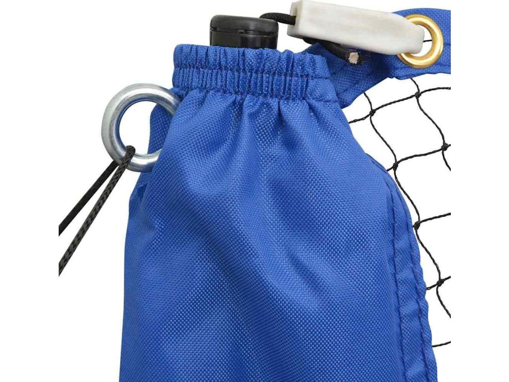 Balení obsahuje: 1 sadu badmintonové sítě s rámem, 3 košíčky, 4 železné ukotvovací kolíky, 4 plastové ukotvovací kolíky, 2 provazy z PP a 1 přenosnou tašku.