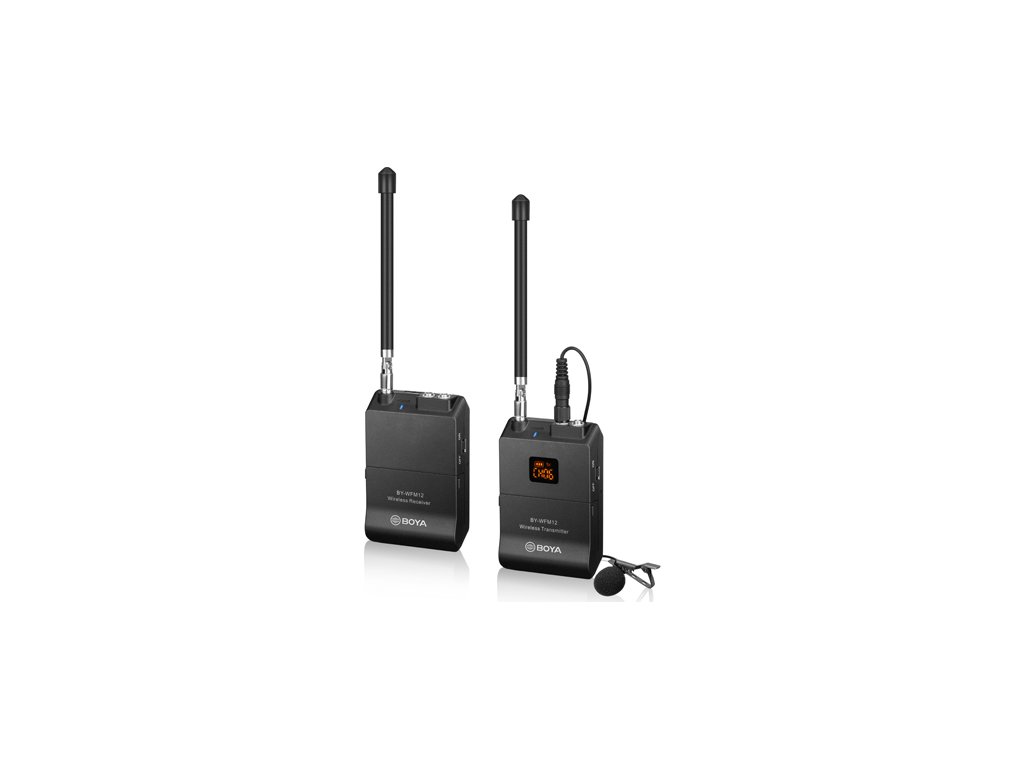- Bezdrátový mikrofonní UHF systém Boya BY-WFM12 přepíná mezi 12 frekvencemi s automatickým párováním