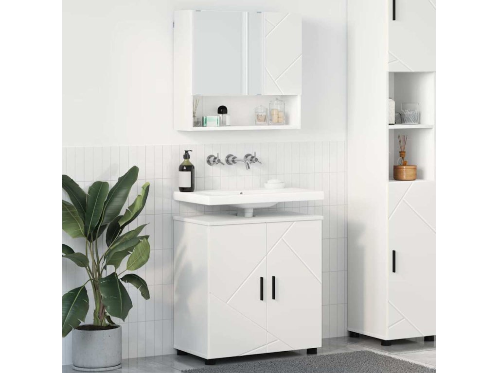Sada koupelnového nábytku 2 pcs Bílá Kompozitní dřevo & kov [3392933]
