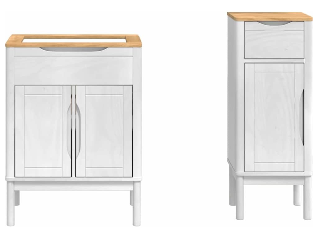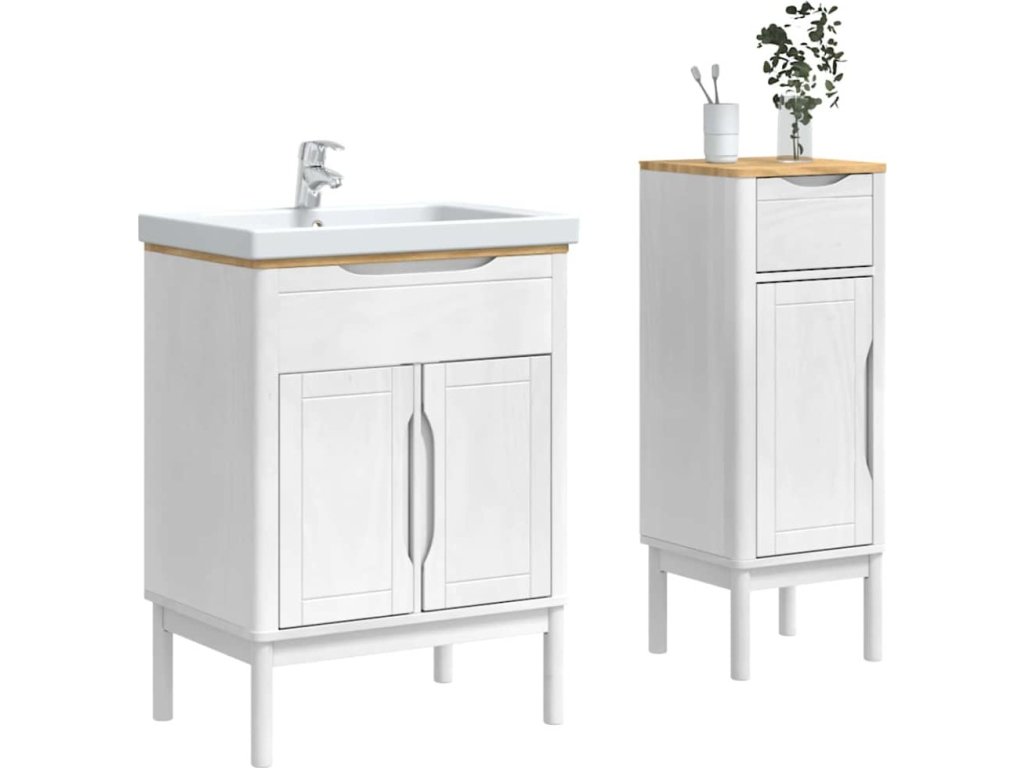 Tahle moderní koupelnová nábytková sada dodává každé koupelně šmrnc a skvělý styl. Je navržená tak, aby se hodila na každodenní využití a nabízela jak design, tak funkčnost pro organizovanou atmosféru. S elegantním obdélníkovým tvarem a moderním povrchem snadno zapadne do vašeho moderního interiéru. Trvanlivá konstrukce z masivního borového dřeva zaručuje dlouhou životnost. Skvělá pro ty, co mají rádi jednoduchost a efektivní úložné řešení, tahle sada ztělesňuje minimalistický styl, který si přizpůsobíte podle sebe. Pečlivě navržená, tahle sada vás zve na klidnou a uspořádanou cestu každý den.