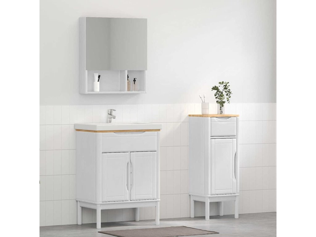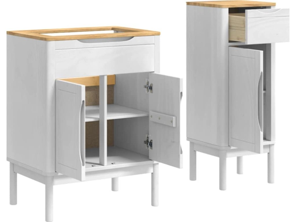 - Masivní borová konstrukce Tento koupelnový nábytek je udělaný z kvalitního borového dřeva. Každý detail - ať už rám, úchyt nebo zadní strana - je pečlivě zpracován, aby zajistil jeho pevnost. Materiál dodává vaší koupelně přírodní vzhled.