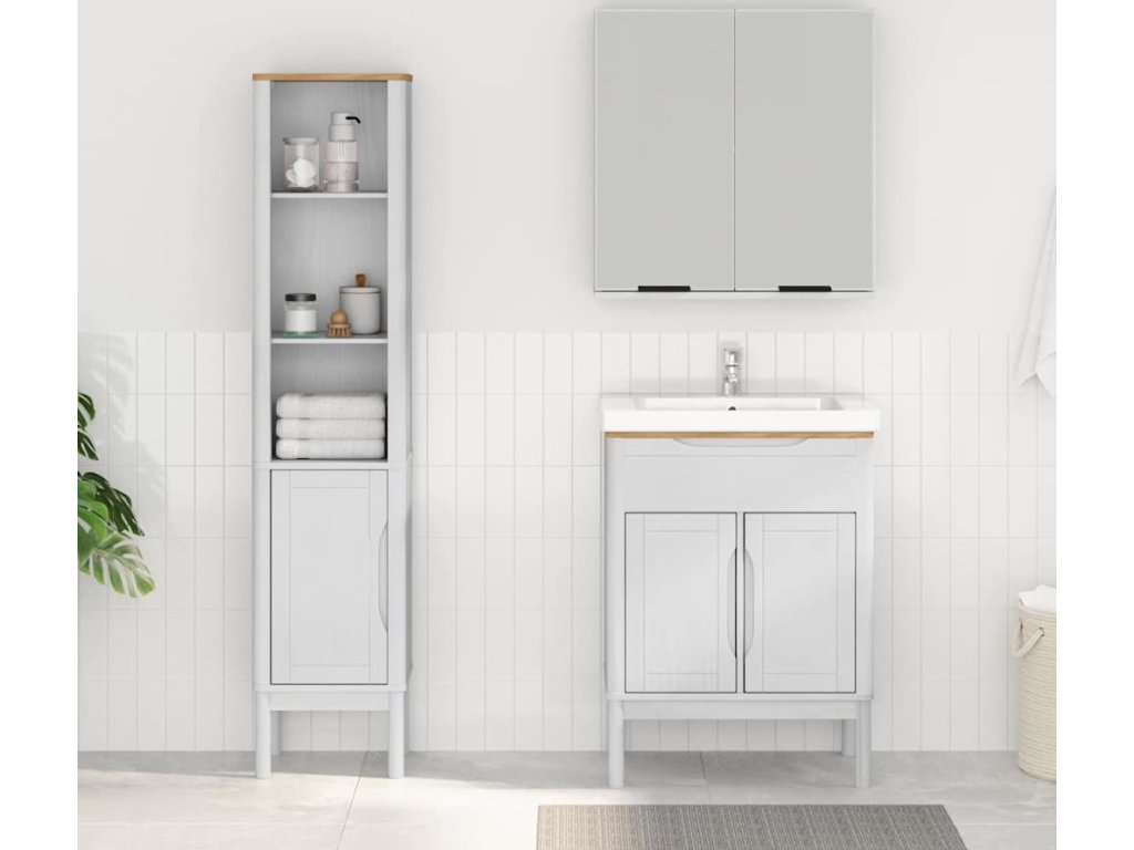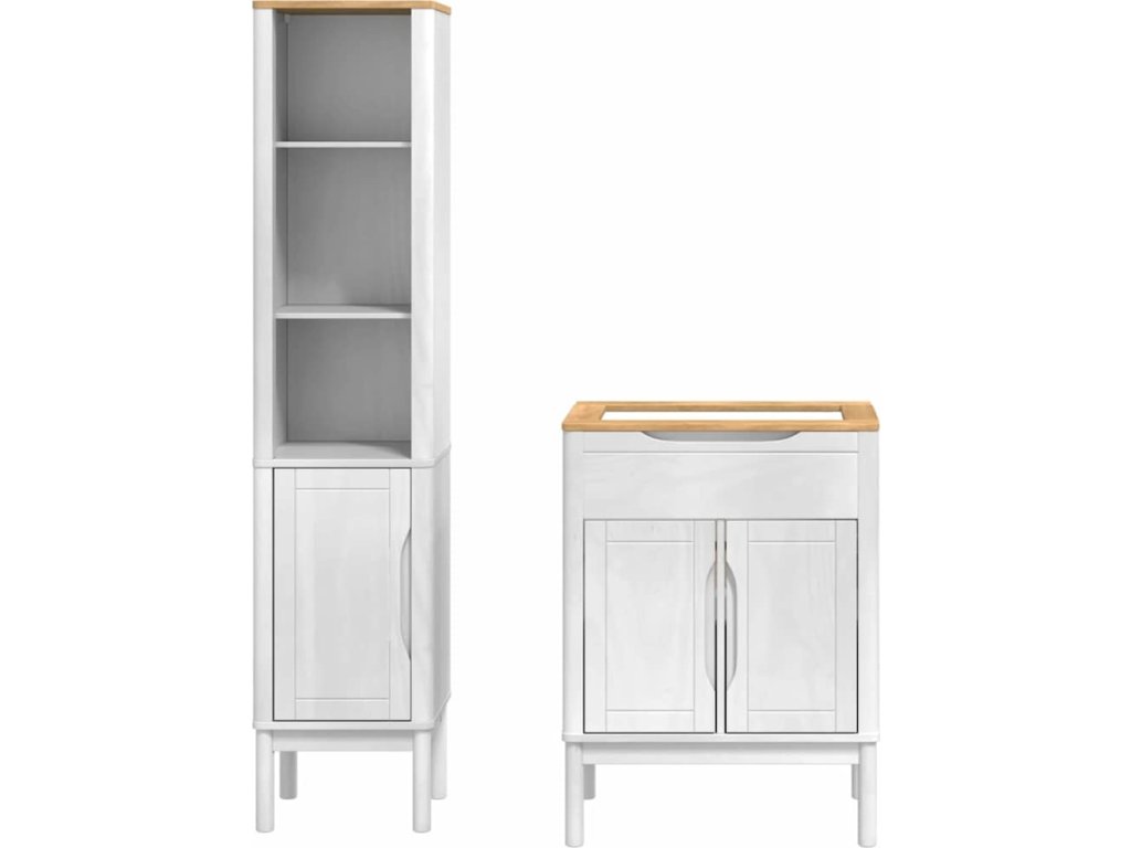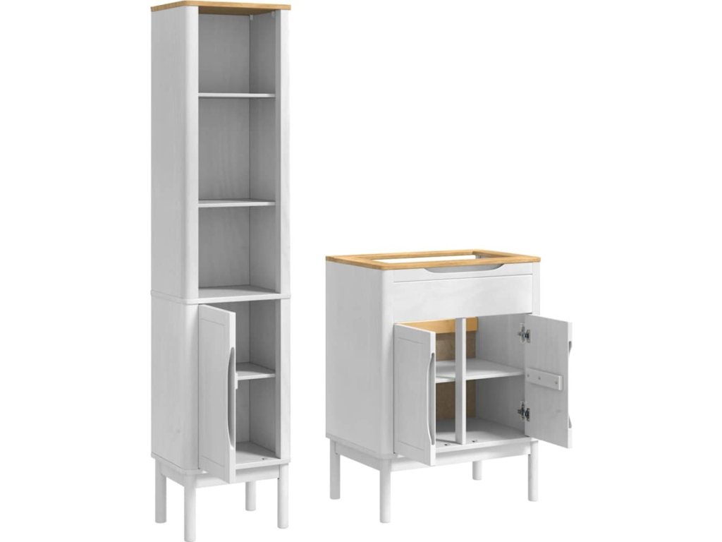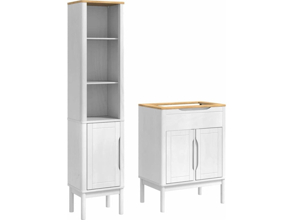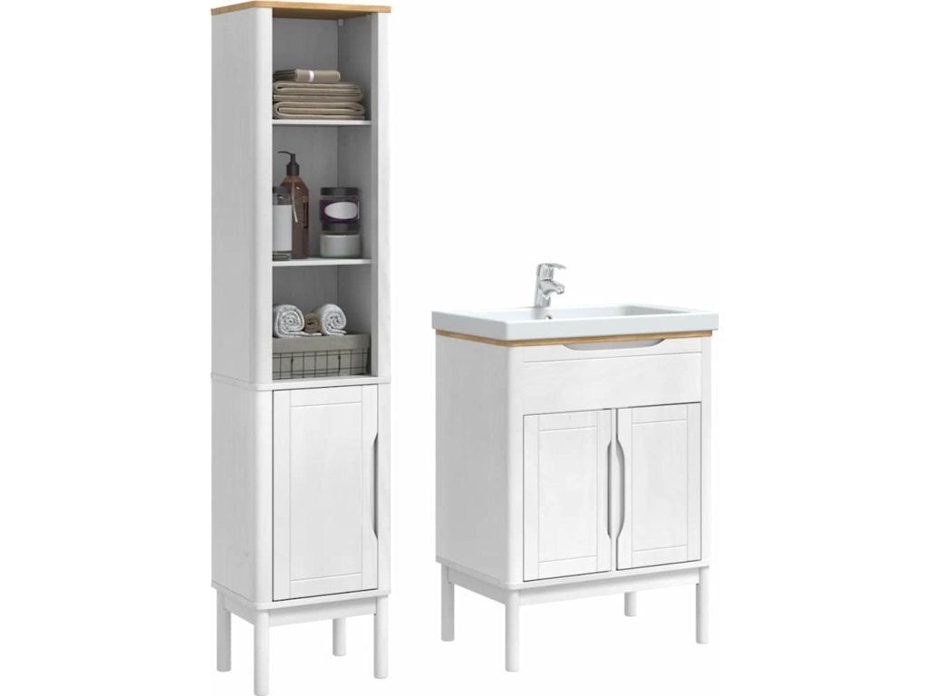 Tahle moderní koupelnová nábytková sada dodává každé koupelně šmrnc a skvělý styl. Je navržená tak, aby se hodila na každodenní využití a nabízela jak design, tak funkčnost pro organizovanou atmosféru. S elegantním obdélníkovým tvarem a moderním povrchem snadno zapadne do vašeho moderního interiéru. Trvanlivá konstrukce z masivního borového dřeva zaručuje dlouhou životnost. Skvělá pro ty, co mají rádi jednoduchost a efektivní úložné řešení, tahle sada ztělesňuje minimalistický styl, který si přizpůsobíte podle sebe. Pečlivě navržená, tahle sada vás zve na klidnou a uspořádanou cestu každý den.