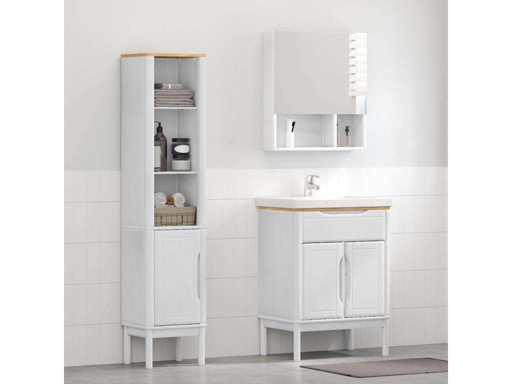 - Masivní borová konstrukce Tento koupelnový nábytek je udělaný z kvalitního borového dřeva. Každý detail - ať už rám, úchyt nebo zadní strana - je pečlivě zpracován, aby zajistil jeho pevnost. Materiál dodává vaší koupelně přírodní vzhled.