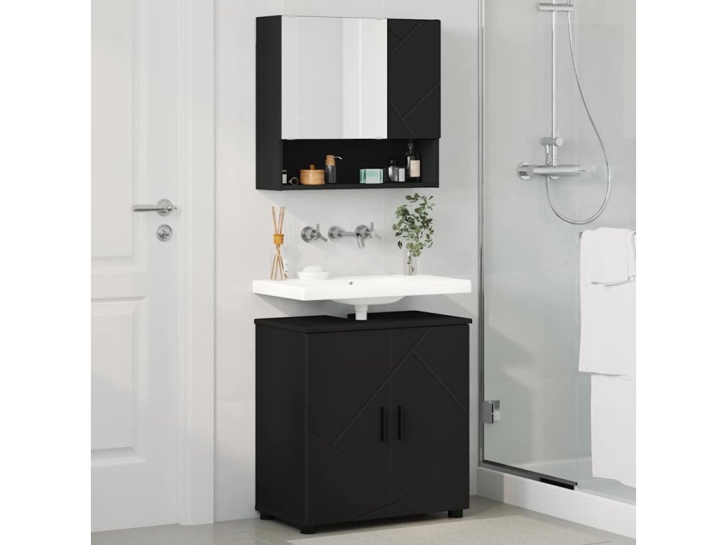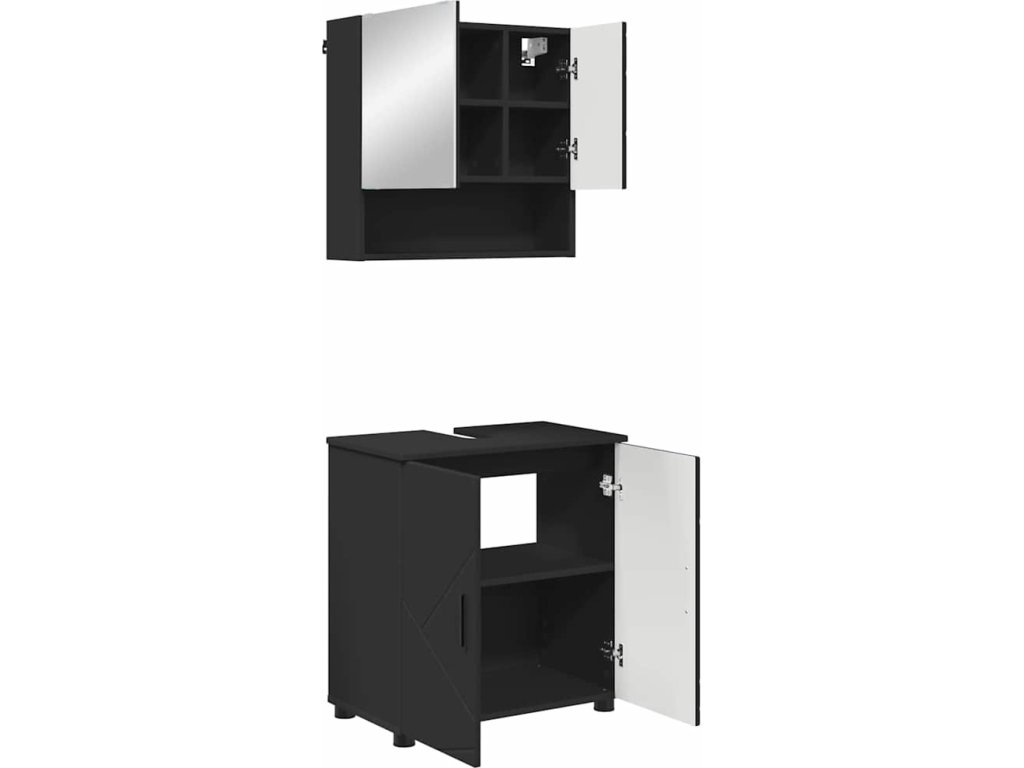 Sada koupelnového nábytku 2 pcs Černá Kompozitní dřevo & kov [3392934]
