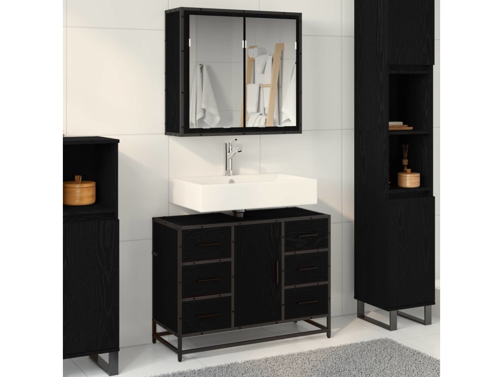Sada koupelnového nábytku 2 pcs Černý dub kompozitní dřevo [3402431]