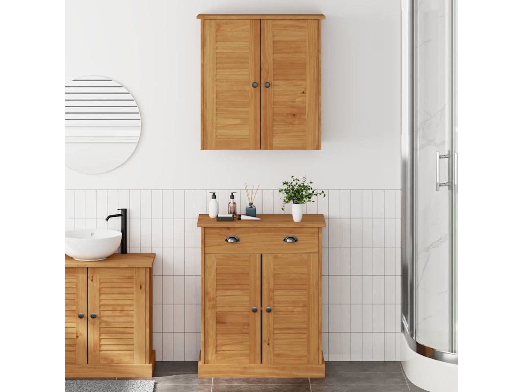 Tento rustikální kousek do koupelny přetváří tvůj prostor šarmem a funkčností, s jeho přírodníma a pevným designem. Vyrobený z borového dřeva, tenhle příborník nabízí spoustu úložného prostoru a krásně vypadá kdekoliv, od obýváku po jídelnu. Jeho úžasná textura a přirozené detaily dodají teplo a charakter, a díky univerzálnímu designu se hodí k jakémukoli stylu.