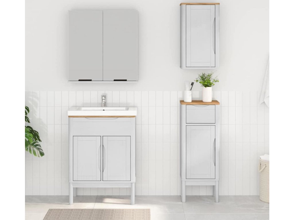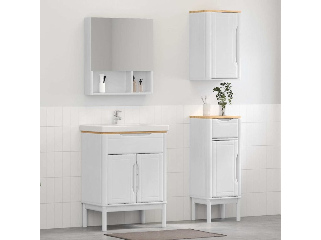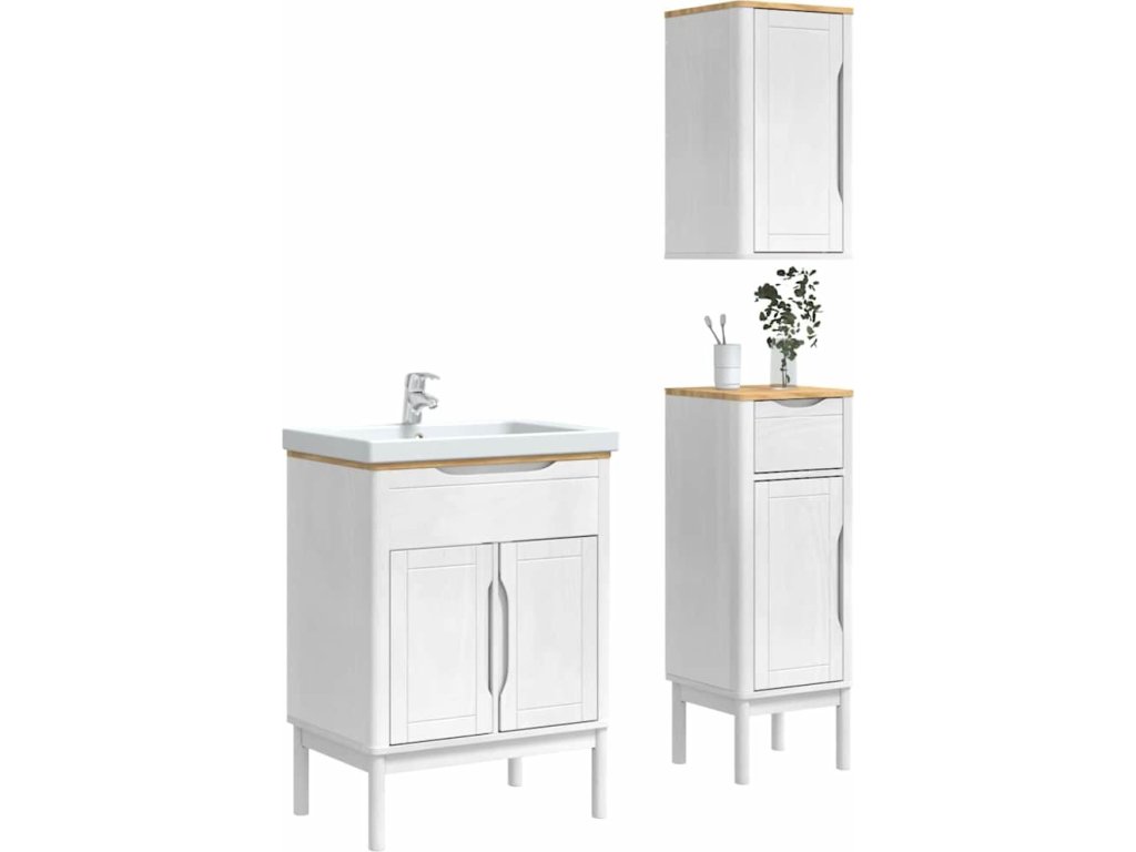Tahle moderní koupelnová nábytková sada dodává každé koupelně šmrnc a skvělý styl. Je navržená tak, aby se hodila na každodenní využití a nabízela jak design, tak funkčnost pro organizovanou atmosféru. S elegantním obdélníkovým tvarem a moderním povrchem snadno zapadne do vašeho moderního interiéru. Trvanlivá konstrukce z masivního borového dřeva zaručuje dlouhou životnost. Skvělá pro ty, co mají rádi jednoduchost a efektivní úložné řešení, tahle sada ztělesňuje minimalistický styl, který si přizpůsobíte podle sebe. Pečlivě navržená, tahle sada vás zve na klidnou a uspořádanou cestu každý den.