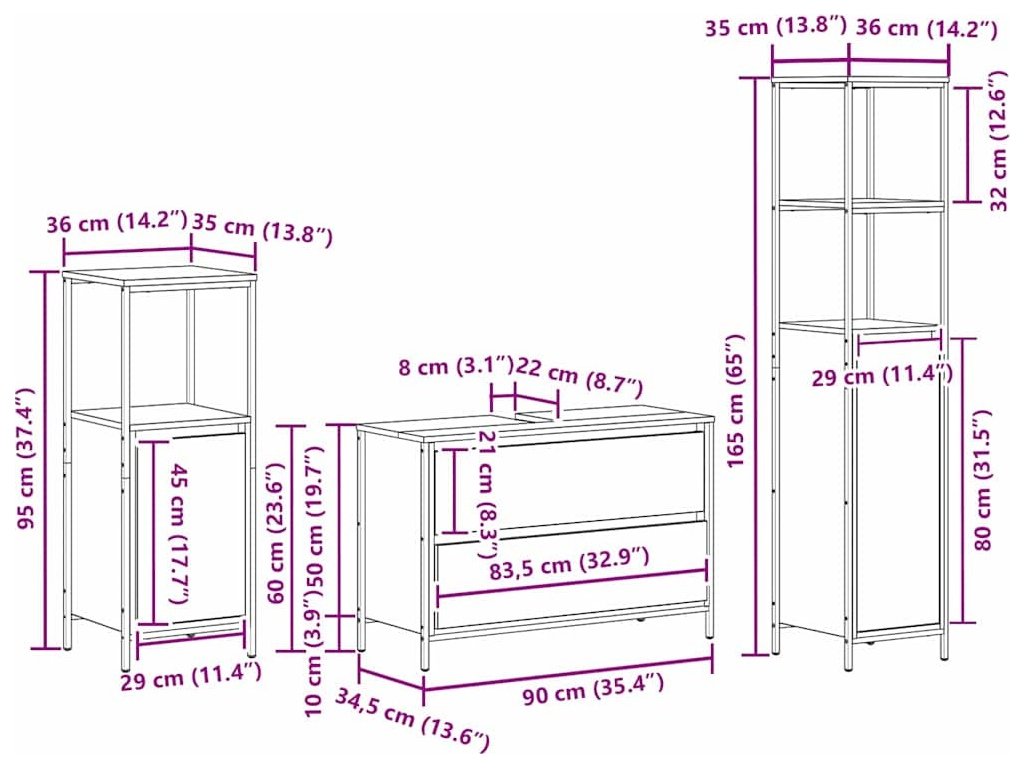 | 1 x koupelnová skříňka: | 36 x 35 x 95 cm (D x Š x V) |