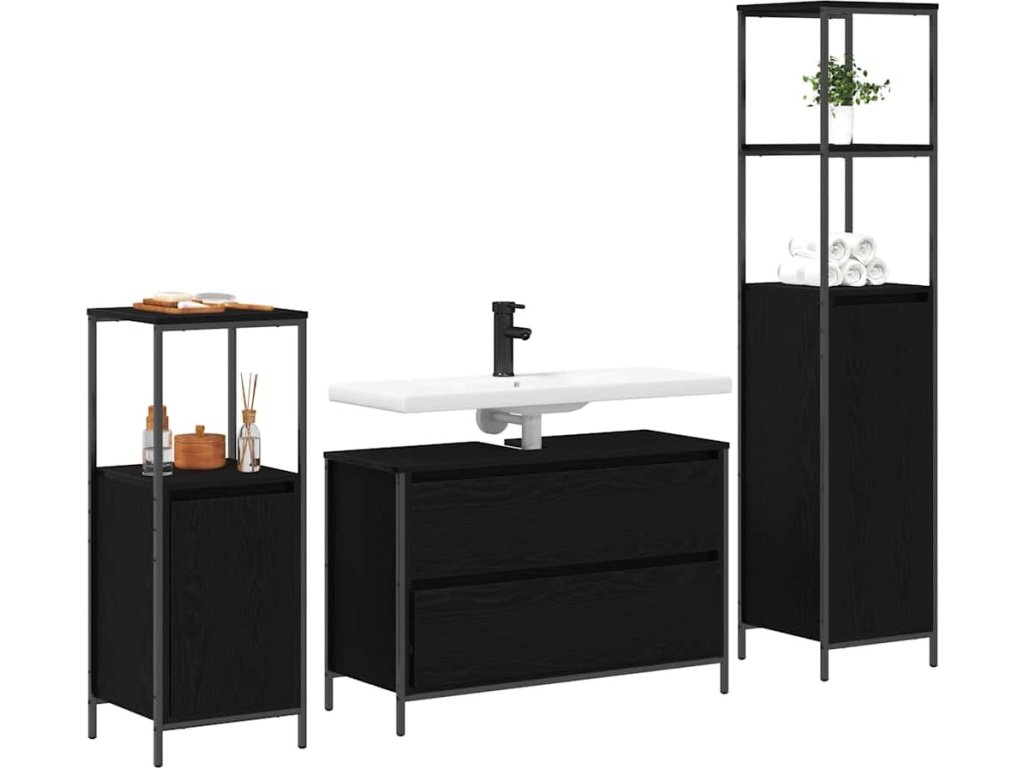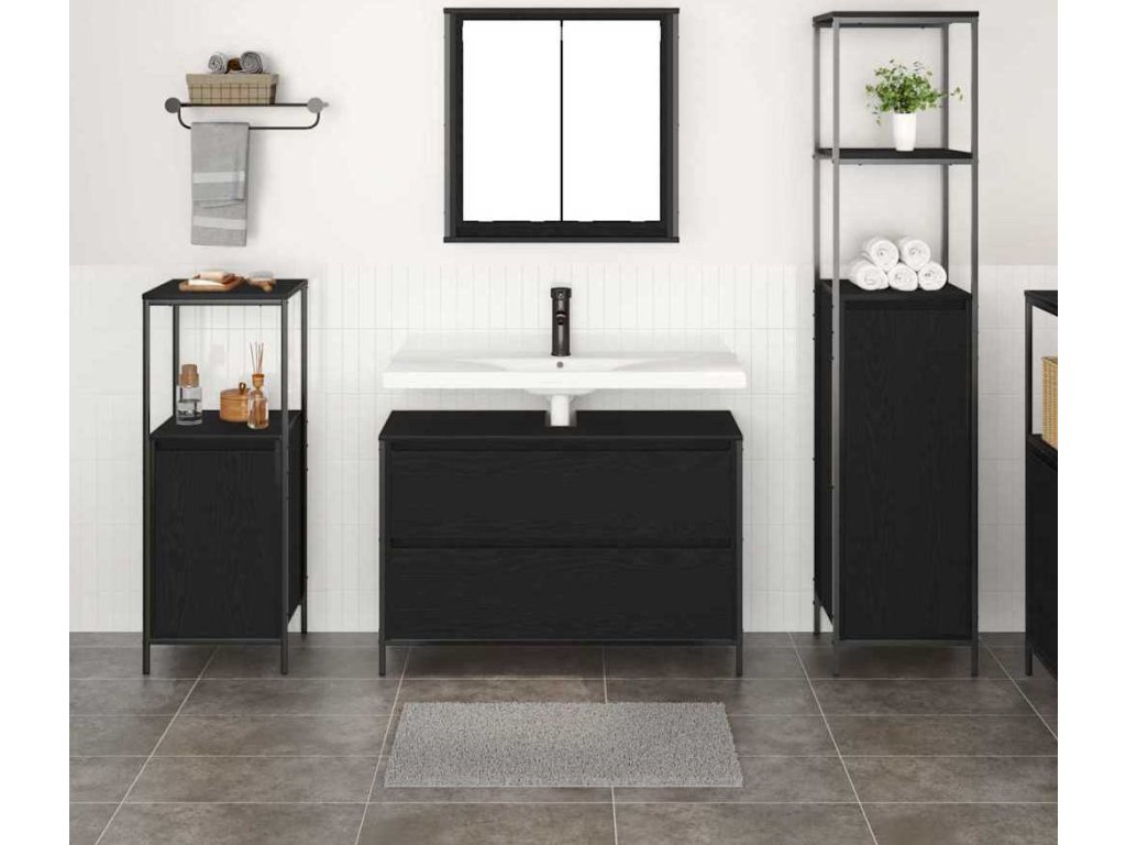 Sada koupelnového nábytku 3 pcs Černý dub kompozitní dřevo [3328359]