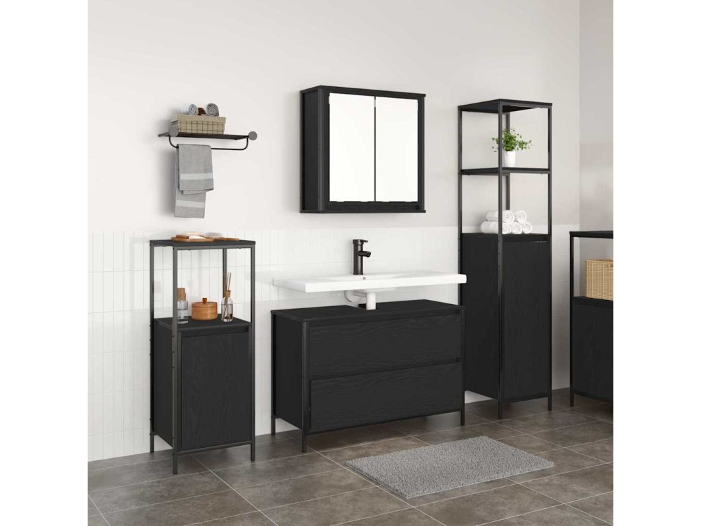 - Funkční vlastnosti: S dostatkem úložného prostoru tato sada usnadňuje organizaci ručníků, toaletních potřeb a dalších nezbytností, což zajišťuje snadný přístup a maximální využití prostoru. Minimalistický design se hodí do současných interiérů, co z ní dělá skvělou volbu pro různé styly bydlení.