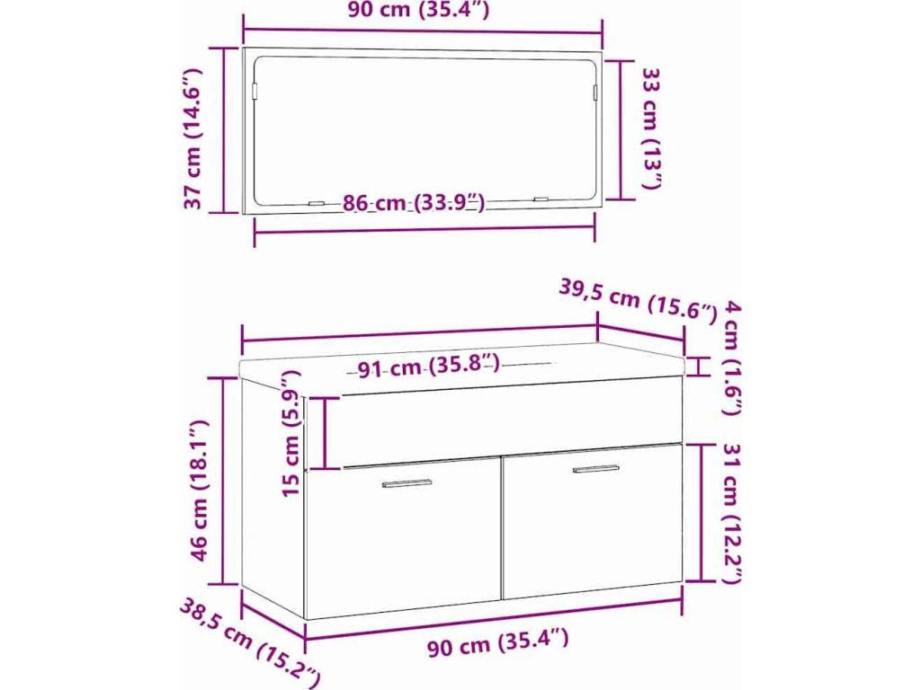 - 1 x Koupelnová skříňka pod umyvadlo: 90 x 38,5 x 46 cm (D x Š x V)