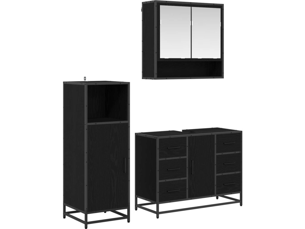 Sada koupelnového nábytku 3 pcs Černý dub kompozitní dřevo [3402380]