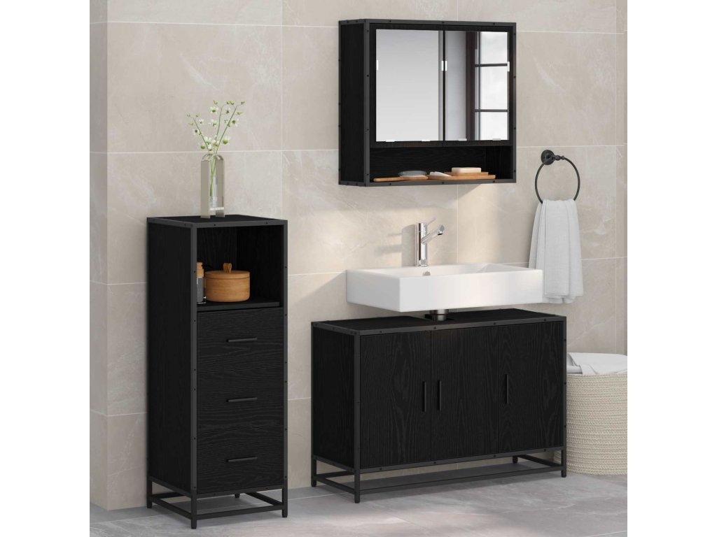 Sada koupelnového nábytku 3 pcs Černý dub kompozitní dřevo [3402410]