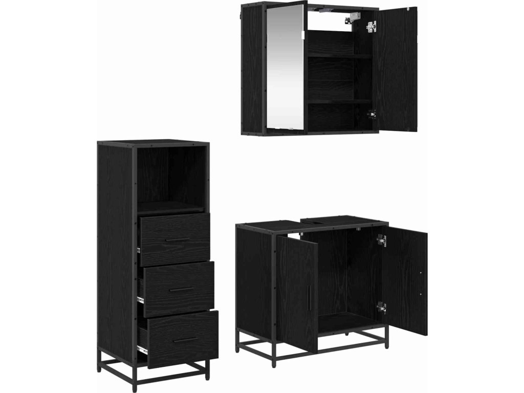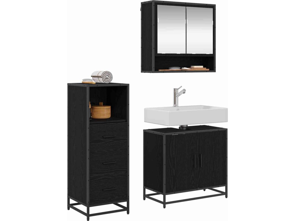 Sada koupelnového nábytku 3 pcs Černý dub kompozitní dřevo [3402446]
