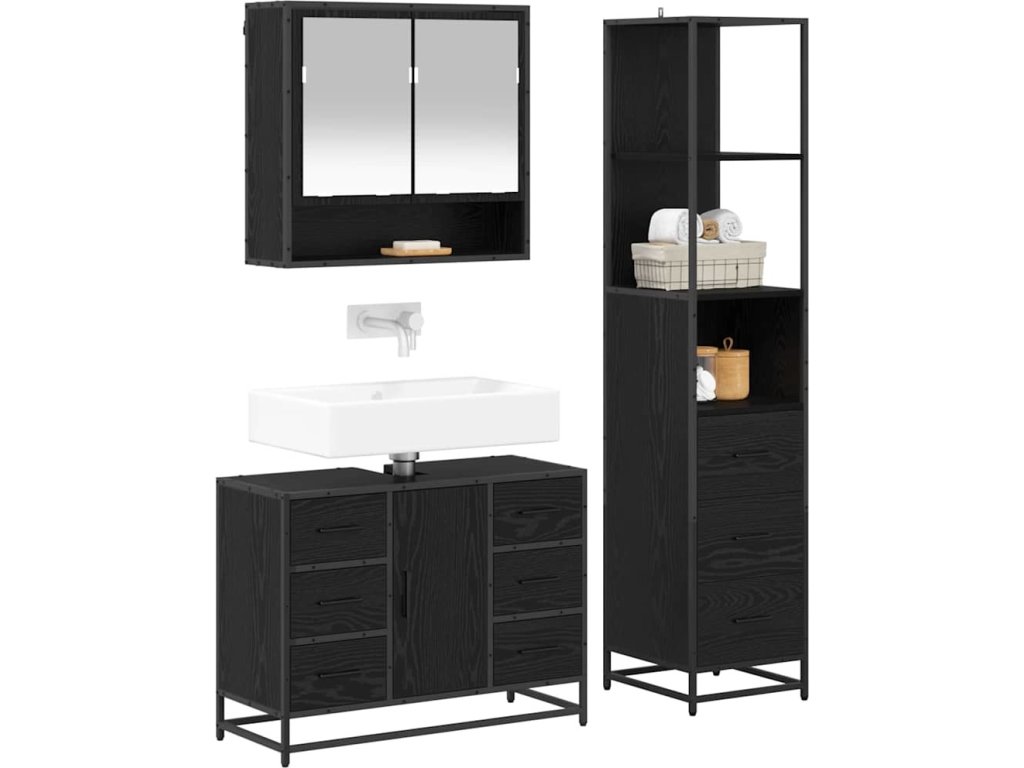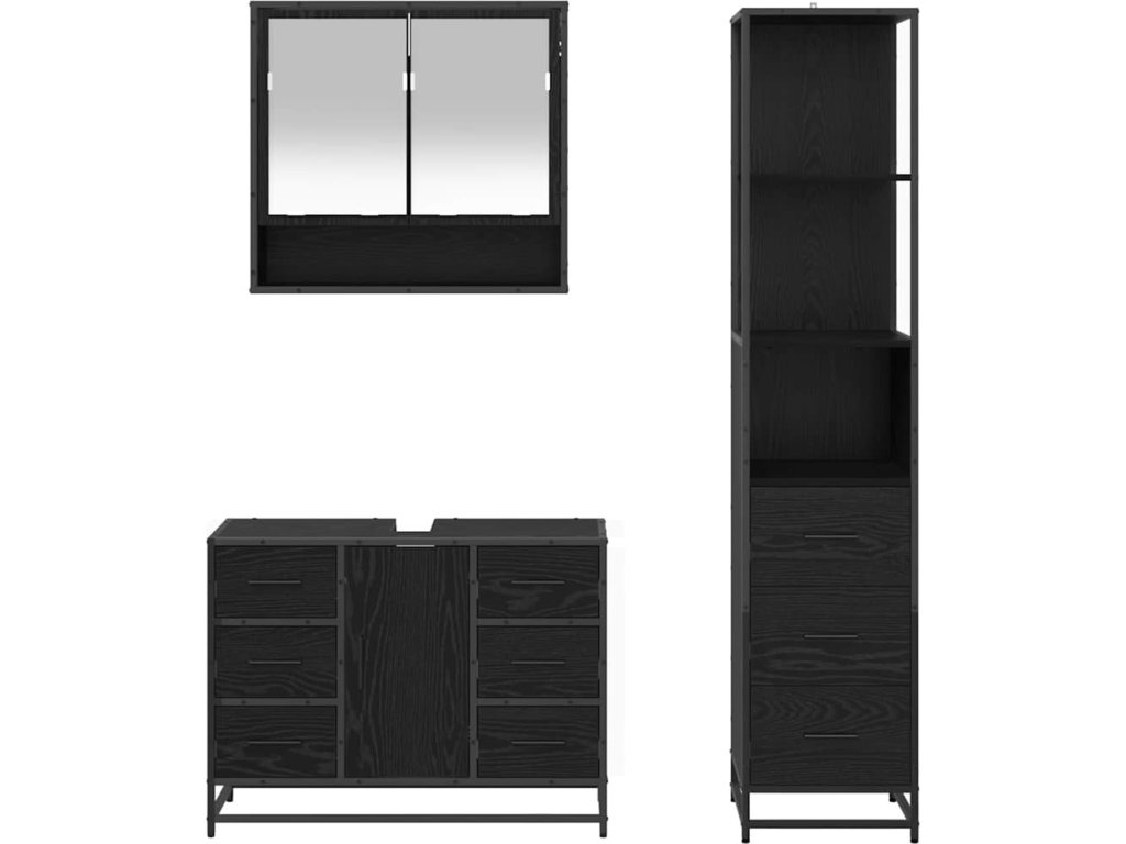 Sada koupelnového nábytku 3 pcs Černý dub kompozitní dřevo [3402493]