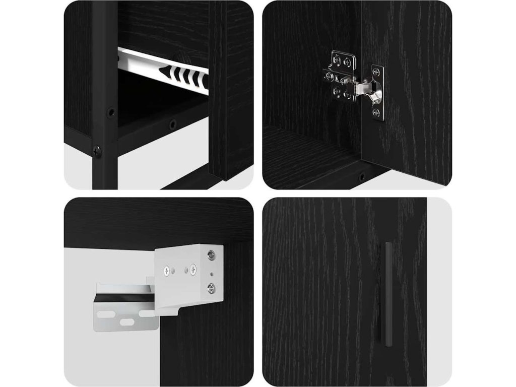 - Součásti: Obsahuje krásně zpracované zrcadlo na úpravy, dostatek polic pro odkládání nezbytností, elegantní dveře a robustní úchyty, které nabízejí stylové řešení pro úložný prostor v koupelně.