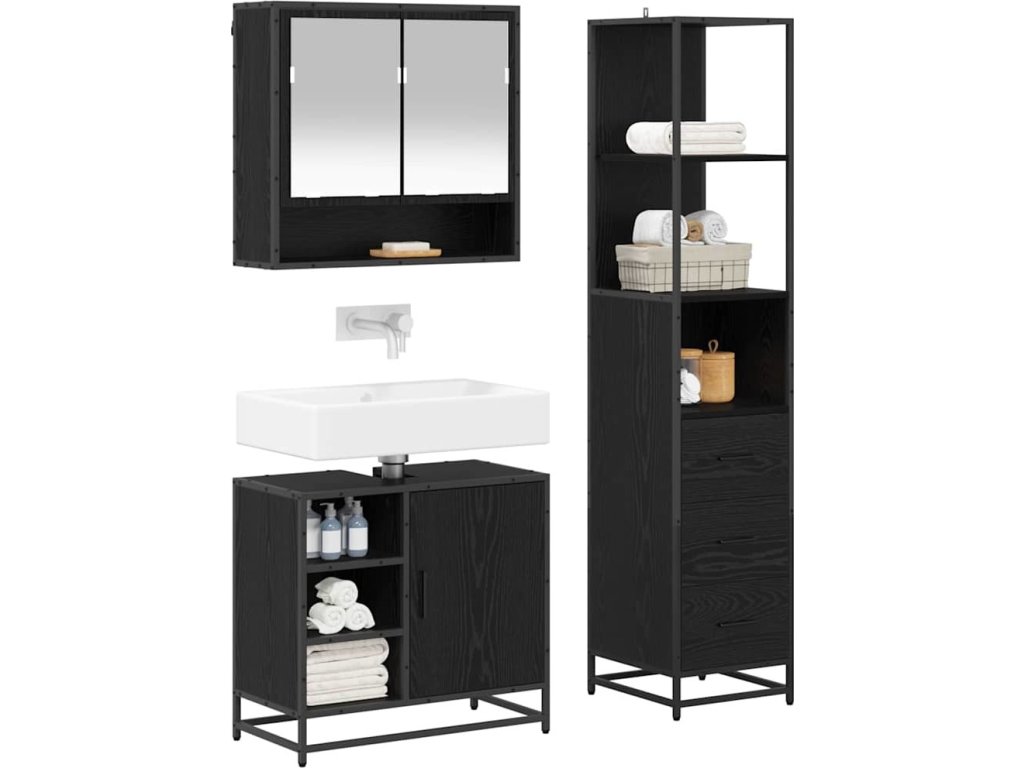 Sada koupelnového nábytku 3 pcs Černý dub kompozitní dřevo [3402505]