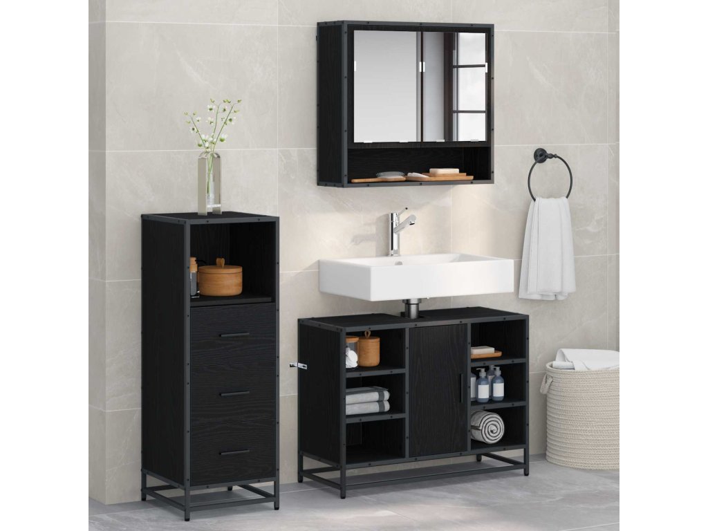 Sada koupelnového nábytku 3 pcs Černý dub kompozitní dřevo [3402565]