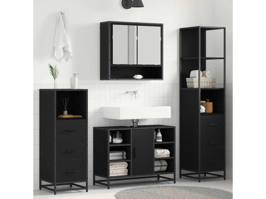 Sada koupelnového nábytku 3 pcs Černý dub kompozitní dřevo [3402571]