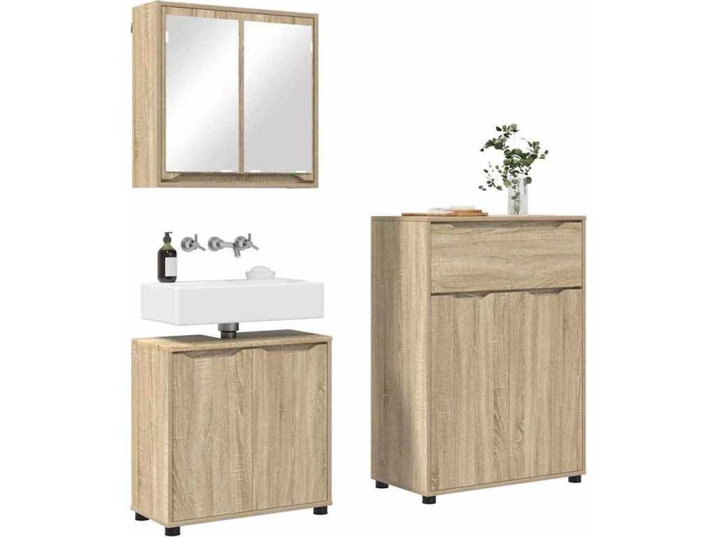 Sada koupelnového nábytku 3 pcs Sonoma dub kompozitní dřevo [3403852]