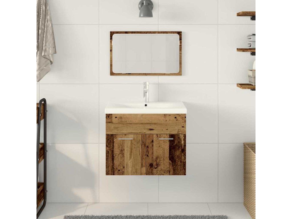Sada koupelnového nábytku 3 pcs Staré dřevo kompozitní dřevo [3332540]