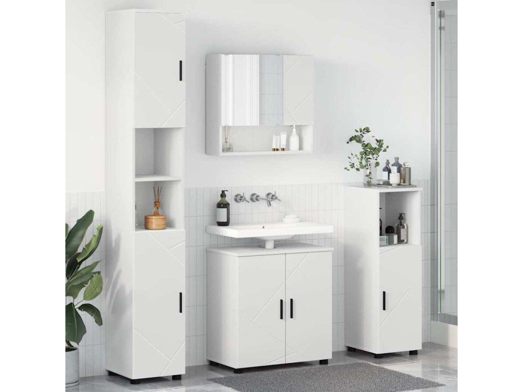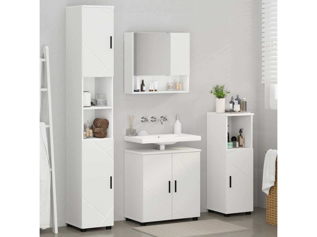 Sada koupelnového nábytku 4 pcs Bílá Kompozitní dřevo & kov [3392963]