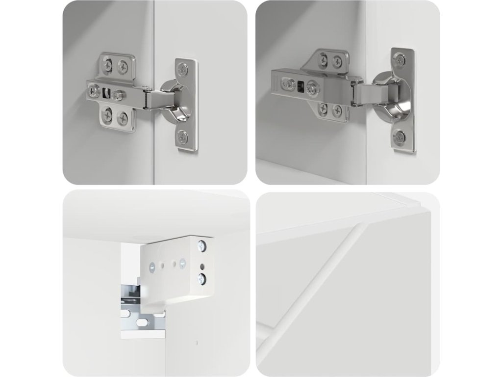 - Funkce / Užitnost / Design: Tento design šetří místo, což je ideální pro menší koupelny, aniž by chyběl úložný prostor. Dveře na pantech a úchyty zajišťují snadný přístup k věcem při udržování střízlivého vzhledu. Moderní design zlepšuje celkovou estetiku koupelny.