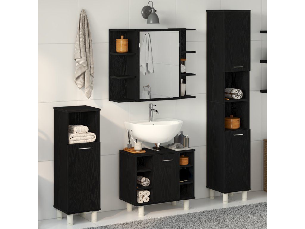 Sada koupelnového nábytku 4 pcs Černá 30 x 30 x 179,5 cm [3333047]